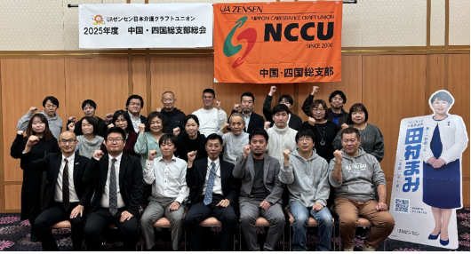 11月9日(土)、岡山市の「サンピーチOKAYAMA」にて、「2025年度総支部総会」を開催し、中国・四国総支部の9県から25名が参加しました。「2024年度の活動報告・会計報告」および「2025年度の活動計画・予算・役員体制」について確認するとともに、今後も役員全員で組合活動を活発に進めていくことを改めて共有しました。