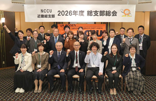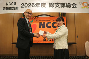 総会では、近畿総支部の2025年度の活動・会計報告を行い、また、2026年度総支部活動計画・予算(案)が提案され、出席した組合員の満場の拍手で確認されました。