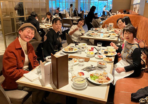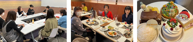 意見交換会の後は、ウェスティンホテル東京のインターナショナルレストラン「ザ・テラス」へ移動し、ランチビュッフェを楽しみました。種類豊富な料理に加え、クリスマス仕様のデザートも用意されており、参加者の皆さんに大変好評でした。