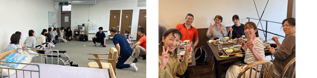会場のSOMPOケア七尾に組合員16名が参加。午前中はステップアップセミナーとして『古武術介護』を実施しました。