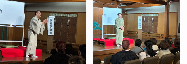 講師のおふたりは、レクリエーション介護士の資格を持つ人気落語家です。落語の手法を活用したコミュニケーション技術など、笑いを交えて講演していただきました。