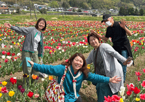 当日は天候にも恵まれ、豊後大野地域の名所を巡りながら、この時期ならではのチューリップ畑の鑑賞や、甘くジューシーな味わいが特徴のいちご「さがほのか」のいちご狩りを楽しみました。